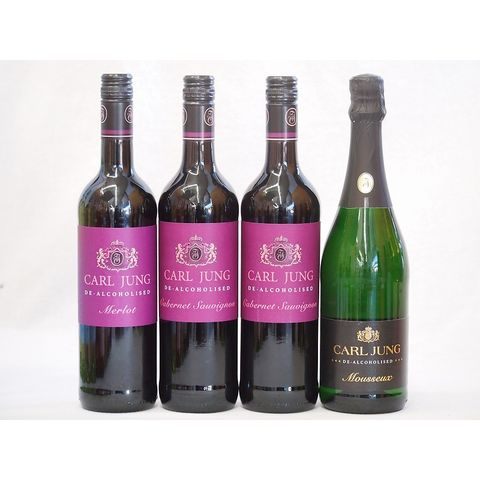 脱アルコールワイン4本セット(脱アルコールスパークリング白ワイン カールユングドライ(やや辛口) 脱アルコール赤ワイン カールユング カベルネ・ソーヴィ二ヨン 脱アルコール赤ワイン カールユング メルロー) 750ml×4本