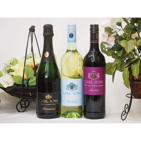 脱アルコールワイン3本セット(脱アルコールスパークリング白ワイン カールユングドライ(やや辛口) 脱アルコール白ワイン カールユングリースリング 脱アルコール赤ワイン カールユング メルロー) 750ml×3本