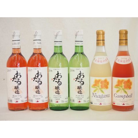日本産葡萄100%おたるワイン6本セット 完熟ナイアガラ白1本 プレミアムキャンベルロゼ1本 白2本 ロゼ2本 (北海道)720ml×6本