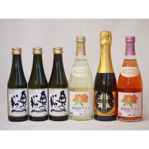 スパークリング日本酒×スパークリングワイン(奥の松純米大吟醸290ml3本 北海道おたるナイアガラ500ml白1本ロゼ1本 ゆずどん1本)計6本