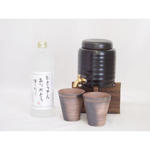 父の日 本格焼酎サーバー1000cc(18cm×24cm 1kg)三重県萬古焼き備前金彩ペアカップ(200ml×2個)井上酒造 おとうさんありがとう樫樽熟成本格芋焼酎 (大分県) 720ml×1本