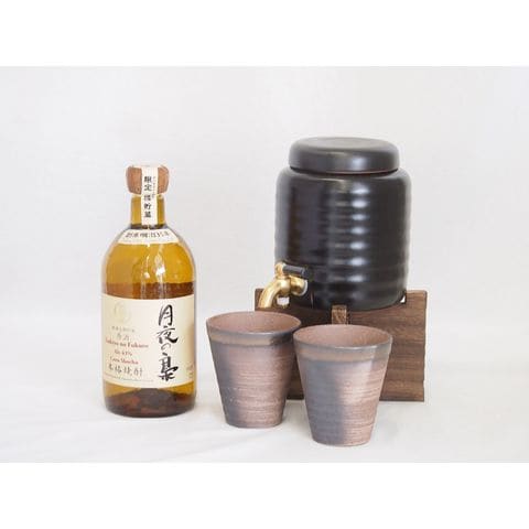 本格焼酎サーバー1000cc(18cm×24cm 1kg)三重県萬古焼き備前金彩ペアカップ(200ml×2個)とうもろこし樽貯蔵焼酎原酒月夜の梟43度(宮崎県) 720ml×1本
