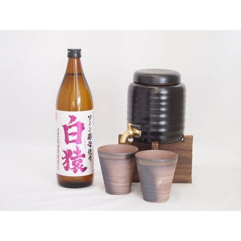 本格焼酎サーバー1000cc(18cm×24cm 1kg)三重県萬古焼き備前金彩ペアカップ(200ml×2個)小正醸造 本格麦焼酎 ワイン酵母使用白猿 (鹿児島県) 720ml×1本