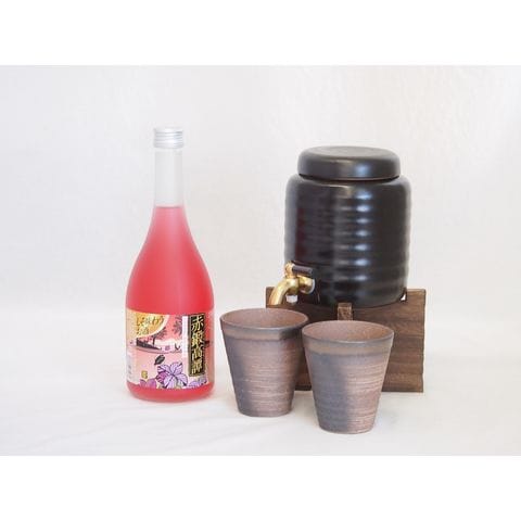 本格焼酎サーバー1000cc(18cm×24cm 1kg)三重県萬古焼き備前金彩ペアカップ(200ml×2個)合同酒精 赤城紫蘇焼酎赤鍛高譚(北海道) 720ml×1本