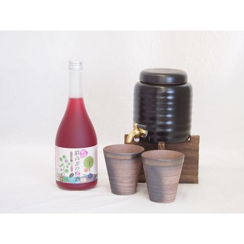 本格焼酎サーバー1000cc(18cm×24cm 1kg)三重県萬古焼き備前金彩ペアカップ(200ml×2個)合同酒精 しそ香る鍛高譚の梅酒 (千葉県) 720ml×1本
