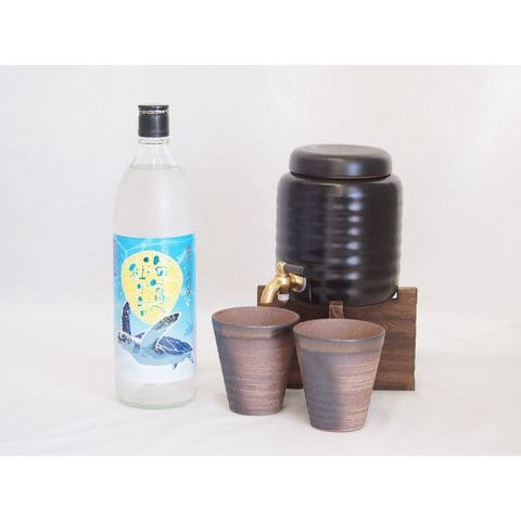 本格焼酎サーバー1000cc(18cm×24cm 1kg)三重県萬古焼き備前金彩ペアカップ(200ml×2個)奄美酒造 黒糖焼酎 海亀の独り言 (鹿児島県) 900ml×1本