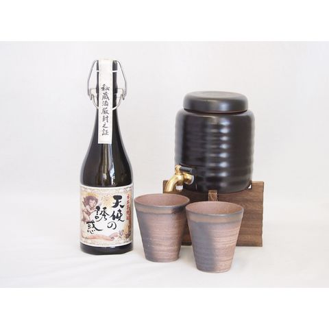 本格焼酎サーバー1000cc(18cm×24cm 1kg)三重県萬古焼き備前金彩ペアカップ(200ml×2個)西酒造 日本芋焼酎 秘蔵酒厳封之証天使の誘惑 (鹿児島県) 720ml×1本