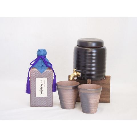 本格焼酎サーバー1000cc(18cm×24cm 1kg)三重県萬古焼き備前金彩ペアカップ(200ml×2個)濱田酒造 本格芋焼酎 長期貯蔵芋原酒特上大魔王 (鹿児島県) 600ml×1本