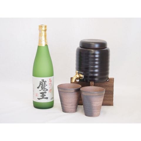 本格焼酎サーバー1000cc(18cm×24cm 1kg)三重県萬古焼き備前金彩ペアカップ(200ml×2個)白玉醸造 本格芋焼酎 名門の絆魔王 (鹿児島県) 720ml×1本