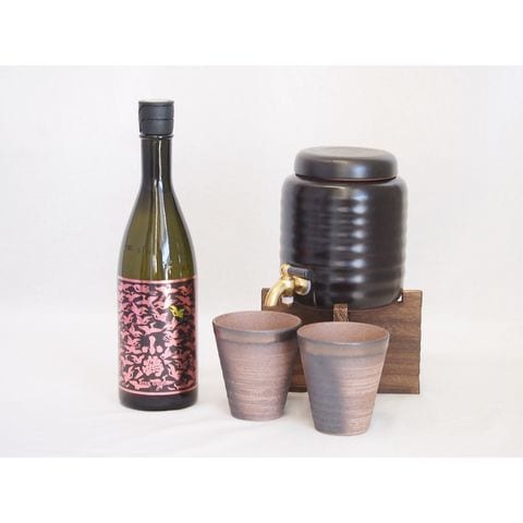 本格焼酎サーバー1000cc(18cm×24cm 1kg)三重県萬古焼き備前金彩ペアカップ(200ml×2個)小正酒造 芋焼酎シャンパン酵母使用小鶴ピンクゴールド (鹿児島県) 720ml×1本