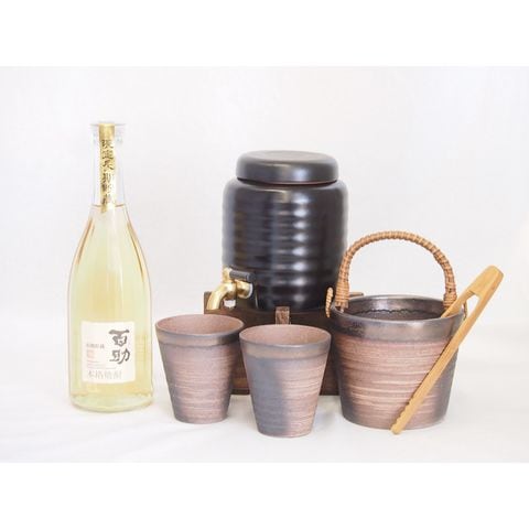本格焼酎サーバー1000cc(18cm×24cm 1kg)萬古焼ペアカップ氷入れ竹トングセット井上酒造 長期貯蔵本格麦焼酎 百助 (大分県)l 720ml×1本