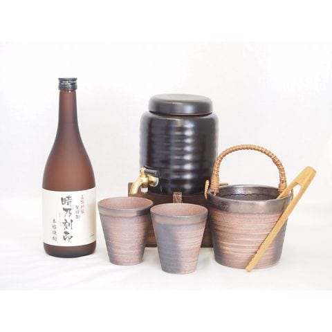 本格焼酎サーバー1000cc(18cm×24cm 1kg)萬古焼ペアカップ氷入れ竹トングセット宮崎本店 本格米焼酎 長期貯蔵時乃刻印 (三重県) 720ml×1本