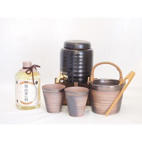 本格焼酎サーバー1000cc(18cm×24cm 1kg)萬古焼ペアカップ氷入れ竹トングセット雲海酒造 本格そば焼酎 長期熟成貯蔵那由多の刻 (宮崎県) 720ml×1本