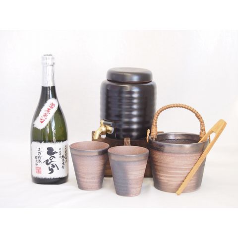 本格焼酎サーバー1000cc(18cm×24cm 1kg)萬古焼ペアカップ氷入れ竹トングセット恒松酒造 純米焼酎常圧蒸留ひのひかり25° (熊本県) 720ml×1本