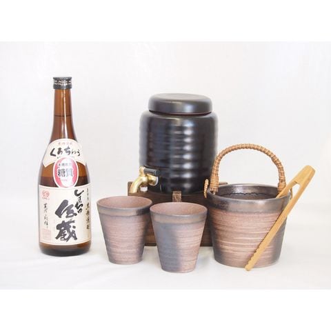 本格焼酎サーバー1000cc(18cm×24cm 1kg)萬古焼ペアカップ氷入れ竹トングセット喜界島酒造 黒糖焼酎 くろちゅうしまっちゅ伝蔵 (鹿児島県) 720ml×1本