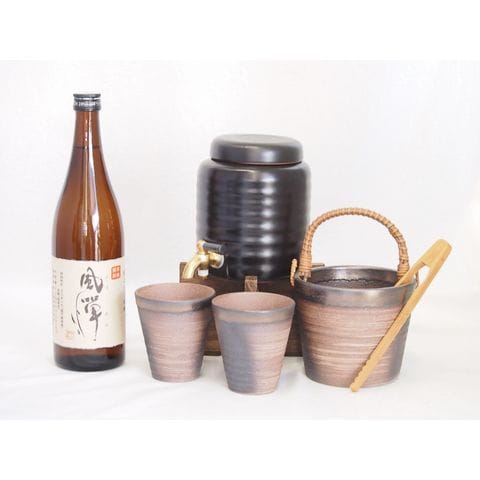 本格焼酎サーバー1000cc(18cm×24cm 1kg)萬古焼ペアカップ氷入れ竹トングセット吹上焼酎 本格芋焼酎 黒麹使用風憚 (鹿児島県) 720ml×1本