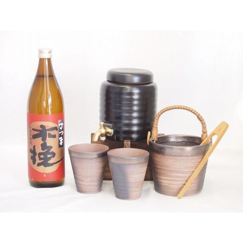 本格焼酎サーバー1000cc(18cm×24cm 1kg)萬古焼ペアカップ氷入れ竹トングセット雲海酒造 本格芋焼酎さつま木挽 (鹿児島県) 900ml×1本