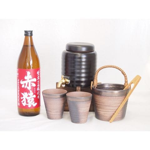 本格焼酎サーバー1000cc(18cm×24cm 1kg)萬古焼ペアカップ氷入れ竹トングセット小正醸造 本格芋焼酎紫芋の王様赤猿 (鹿児島県) 900ml×1本