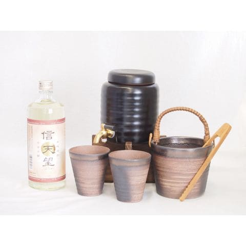 本格焼酎サーバー1000cc(18cm×24cm 1kg)萬古焼ペアカップ氷入れ竹トングセット深野酒造 本格麦焼酎 信天望麦芽芳醇23° (熊本県) 720ml×1本
