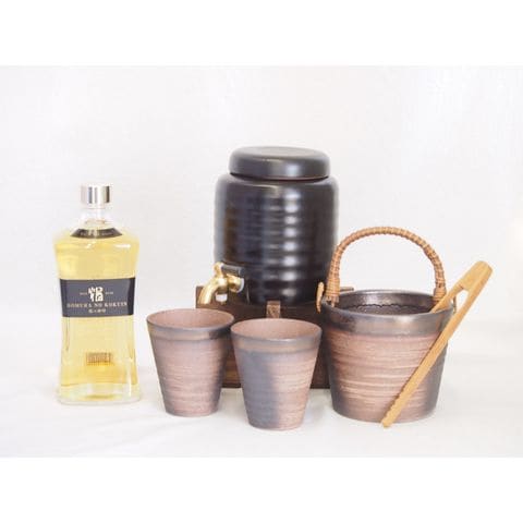 本格焼酎サーバー1000cc(18cm×24cm 1kg)萬古焼ペアカップ氷入れ竹トングセット繊月酒造 本格米焼酎 焔の刻印35° (熊本県) 720ml×1本