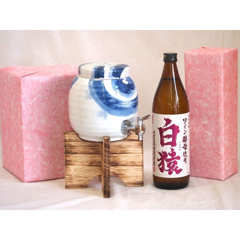 国産有田焼 焼酎サーバー1500cc木代付セット(14.5×15.5cm 1.1kg)小正醸造 本格麦焼酎 ワイン酵母使用白猿 (鹿児島県) 720ml