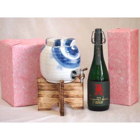 国産有田焼 焼酎サーバー1500cc木代付セット(14.5×15.5cm 1.1kg)壱岐の華麦焼酎尋ね鳥 25 °(長崎県) 720ml