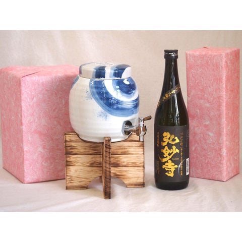 国産有田焼 焼酎サーバー1500cc木代付セット(14.5×15.5cm 1.1kg)井上酒造 本格麦焼酎 ゴルフ寺弘妙寺 (大分県) 720ml