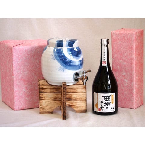 国産有田焼 焼酎サーバー1500cc木代付セット(14.5×15.5cm 1.1kg)濱田酒造 本格芋焼酎 感謝のきもち (鹿児島県) 720ml