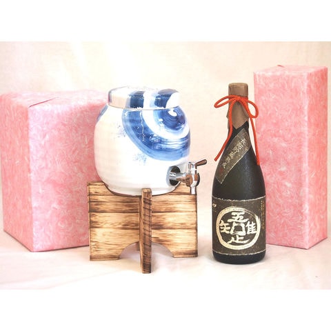 国産有田焼 焼酎サーバー1500cc木代付セット(14.5×15.5cm 1.1kg)薩摩金山蔵 長期貯蔵芋焼酎 吾唯足知 (鹿児島県) 720ml