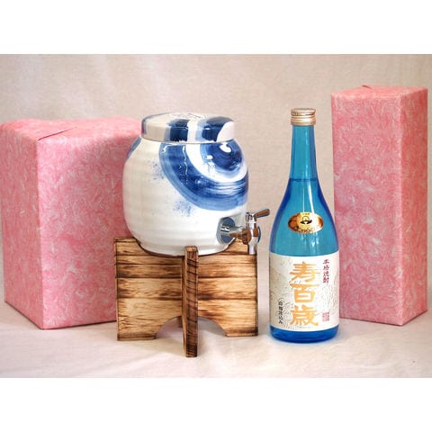 国産有田焼 焼酎サーバー1500cc木代付セット(14.5×15.5cm 1.1kg)東酒造 本格芋焼酎 白麹仕込み寿百歳 (鹿児島県) 720ml