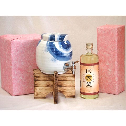 国産有田焼 焼酎サーバー1500cc木代付セット(14.5×15.5cm 1.1kg)深野酒造 本格麦焼酎 信天望麦芽芳醇23° (熊本県) 720ml