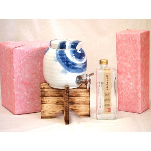 国産有田焼 焼酎サーバー1500cc木代付セット(14.5×15.5cm 1.1kg)黒木本店 本格米焼酎 野うさぎの走り (宮崎県) 600ml