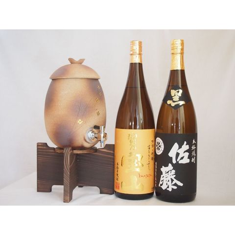 信楽焼・明山窯 焼酎サーバー 火色金小紋 2200cc(滋賀県)芋焼酎2本セット 西酒造 富乃宝山1800ml 佐藤黒1800ml(鹿児島)