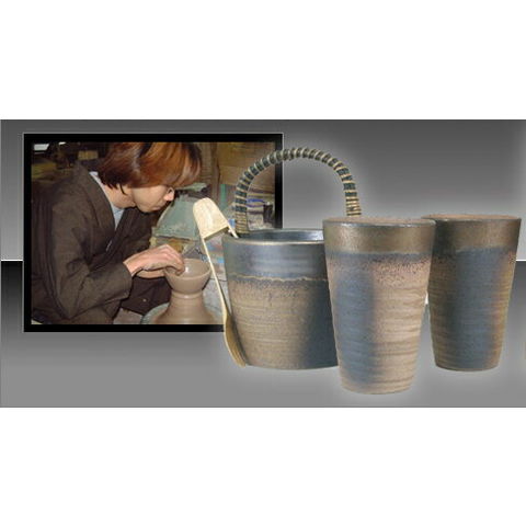 信楽焼・明山窯 焼酎サーバー 火色金小紋 2200cc(滋賀県)+萬古焼・備前金彩焼酎ペアカップ 氷入れ(三重県)+芋焼酎 佐藤 黒 720ml(鹿児島県)