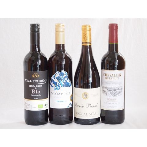 スペイン×フランス特選赤ワイン4本セット(ヴァンドゥツーリズム酸化防止剤無添加&Bioテンプラニーリョ(スペイン) ヴィニャペーニャ ライトボディ(スペイン) シュバリエ・デュ・ルヴァン ルージュ(フランス) パスカルシータキュヴェルージュ(フランス)) 750ml×4本