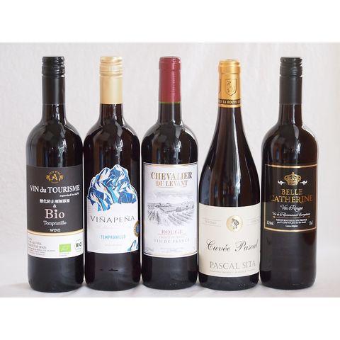 スペイン×フランス特選赤ワイン5本セット(ヴァンドゥツーリズム酸化防止剤無添加&Bioテンプラニーリョ(スペイン) ヴィニャペーニャ ライトボディ(スペイン) シュバリエ・デュ・ルヴァン ルージュ(フランス) パスカルシータキュヴェルージュ(フランス) ベル キャサリン ルージュ(フランス)) 750ml×5本