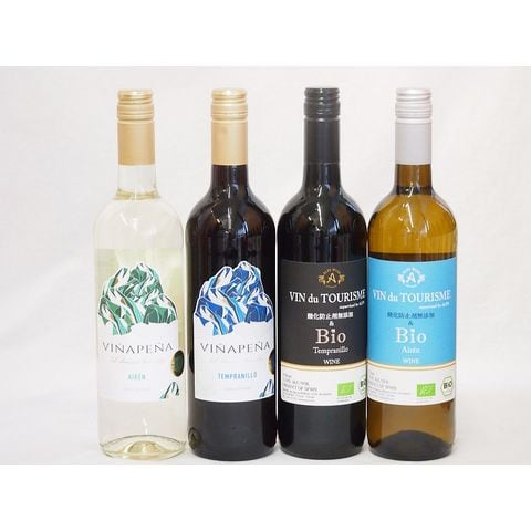スペイン特集赤ワイン4本セット(ヴァンドゥツーリズム酸化防止剤無添加&Bioアイレン白 ヴァンドゥツーリズム酸化防止剤無添加&Bioテンプラニーリョ赤 ヴィニャペーニャ赤ライトボディ ヴィニャペーニャ白辛口) 750ml×4本