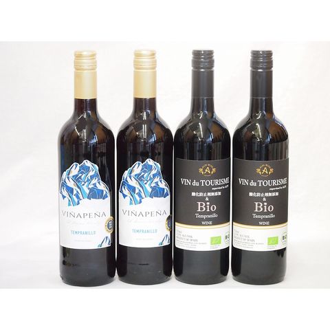 スペイン特集赤ワイン4本セット(ヴァンドゥツーリズム酸化防止剤無添加&Bioテンプラニーリョ赤 ヴィニャペーニャ赤ライトボディ) 750ml×4本