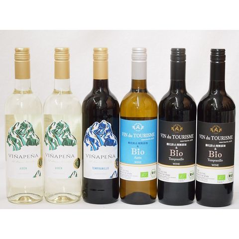 スペインワイン特集6本セット(ヴァンドゥツーリズム酸化防止剤無添加&Bioアイレン白 ヴァンドゥツーリズム酸化防止剤無添加&Bioテンプラニーリョ赤 ヴィニャペーニャ赤ライトボディ ヴィニャペーニャ白辛口) 750ml×6本