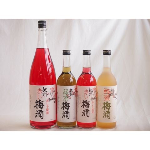 カラフル梅酒4本セット(赤しそ赤い梅酒(和歌山) 蜂蜜梅酒(和歌山) 緑茶梅酒(和歌山)) 1800ml×1本 720ml×3本