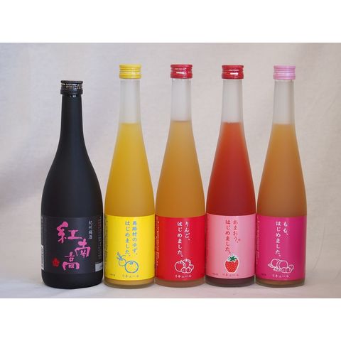 果物梅酒5本セット(あまおう梅酒 もも梅酒 りんご梅酒 紅南高梅酒20度(和歌山) 馬路村のゆず梅酒) 500ml×4本 720ml×1本