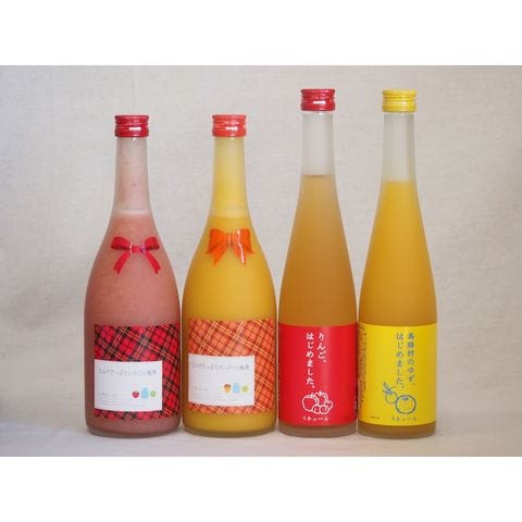 果物梅酒4本セット(ミルクたっぷりいちごの梅酒 ミルクたっぷりマンゴーの梅酒 りんご梅酒 馬路村のゆず梅酒) 720ml×2本 500ml×2本