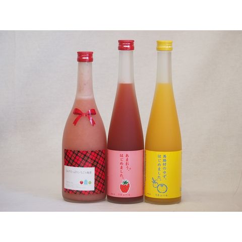 果物梅酒3本セット(あまおう梅酒 ミルクたっぷりいちごの梅酒 馬路村のゆず梅酒) 500ml×2本 720ml×1本