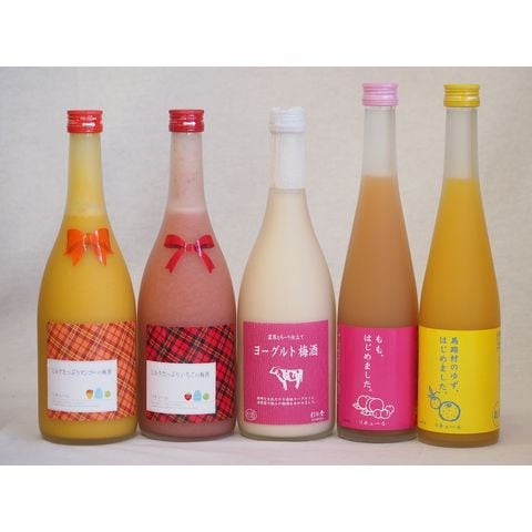 果物梅酒5本セット(ミルクたっぷりいちごの梅酒 ミルクたっぷりマンゴーの梅酒 もも梅酒 ヨーグルト梅酒(福岡) 馬路村のゆず梅酒) 720ml×3本 500ml×2本
