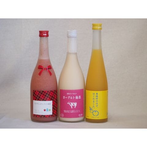 果物梅酒3本セット(ミルクたっぷりいちごの梅酒 ヨーグルト梅酒(福岡) 馬路村のゆず梅酒) 720ml×2本 500ml×1本