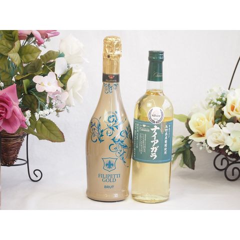辛口スプマンテスパークリングワインと国産ワインセット(長野県産葡萄使用 ナイアガラ白ワイン やや甘口(山梨県)720mlフィリペッティ ゴールド ブリュット (イタリア) 750ml