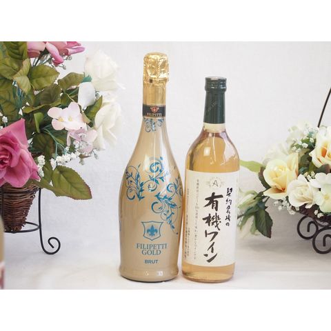 辛口スプマンテスパークリングワインと酸化防止剤無添加ワインセット(酸化防止剤無添加 契約農場の有機白ワイン やや甘口(長野県)720mlフィリペッティ ゴールド ブリュット (イタリア) 750ml