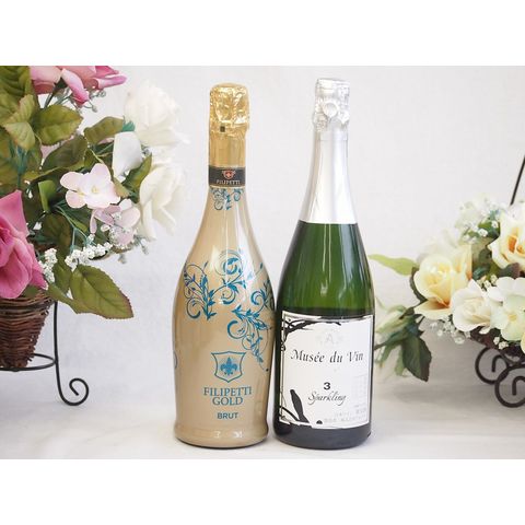 辛口スプマンテスパークリングワインと国産ワインセット(MdV オアシス3 白スパークリングワイン辛口(長野県)750mlフィリペッティ ゴールド ブリュット (イタリア) 750ml