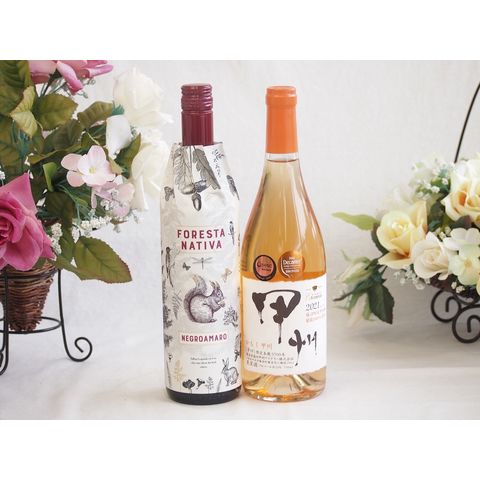 イタリア黒葡萄品種赤ワインと国産ワインセット(かもし甲州 オレンジワイン 辛口(山梨県)720mlフィリペッティ ゴールド ブリュット (イタリア) 750ml