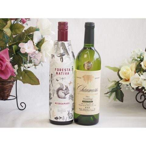 イタリア黒葡萄品種赤ワインと国産ワインセット(グランシャンモリ アッサンブラージュ 白ワイン 辛口(山梨県)750mlフィリペッティ ゴールド ブリュット (イタリア) 750ml